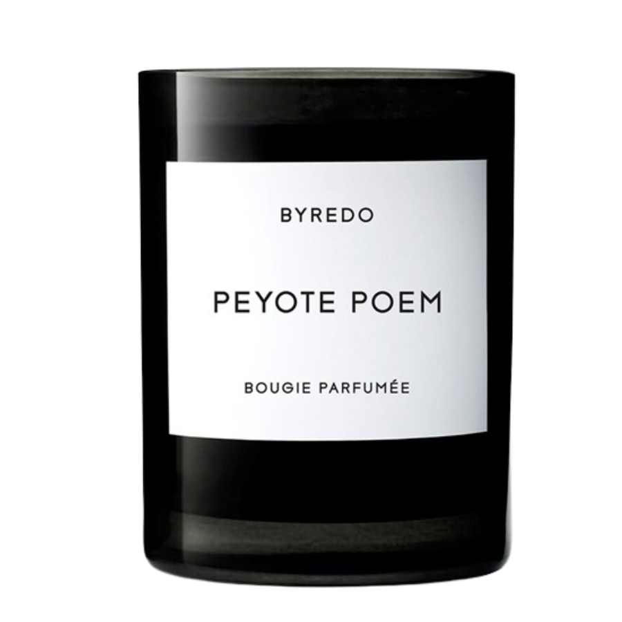 Byredo Peyote Poem Fragranced Candle: This candle is for those who appreciate unique, earthy scents with a touch of herbal freshness. It’s ideal for bringing a calming, grounded vibe to your space.