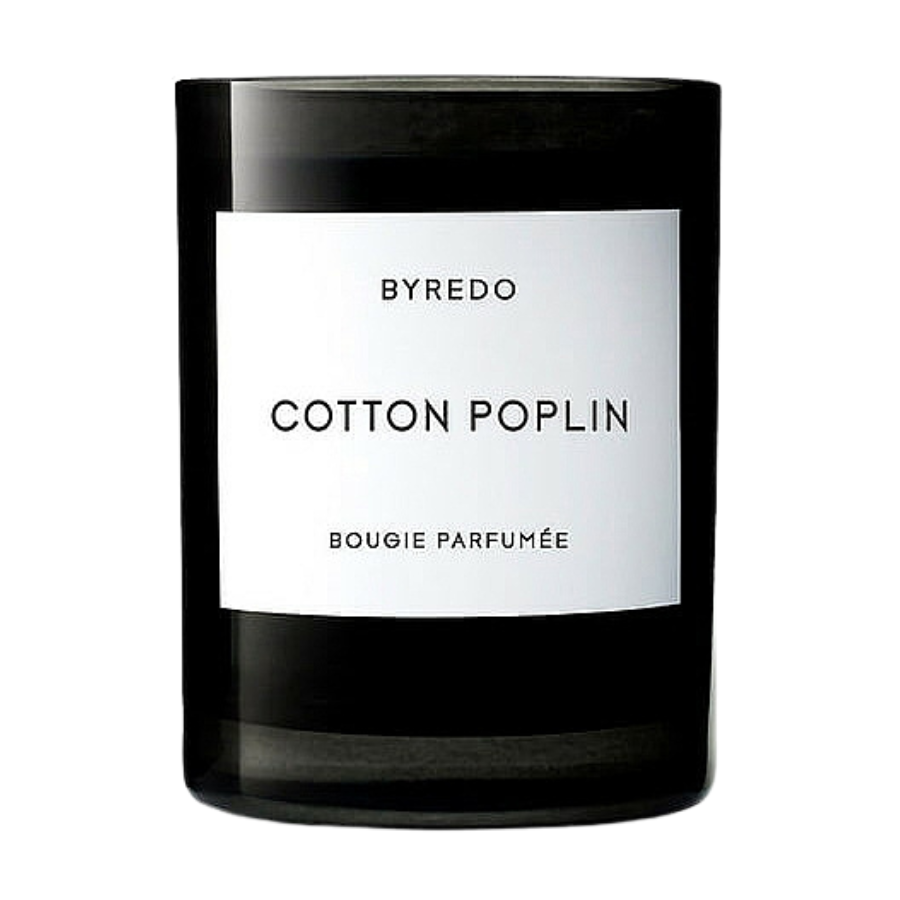 The Byredo Cotton Poplin Scented Candle embodies the fresh and clean scent of freshly laundered cotton. This luxurious candle opens with crisp and airy top notes of blue chamomile, evoking the soothing and calming sensation of clean linens. Heart notes of linen and white cedarwood add a soft, woody dimension, enhancing the candle's pure and comforting character. The base notes of sweet musk and fresh amber provide a warm and enveloping finish, reminiscent of the gentle embrace of a freshly washed and ironed shirt. Encased in a sleek and minimalist glass holder, this candle not only fills your space with a delightful and serene fragrance but also adds a touch of understated elegance to your home decor. Perfect for creating a tranquil and inviting atmosphere, it transports you to a world of calm and cleanliness, where every day feels fresh and new.
