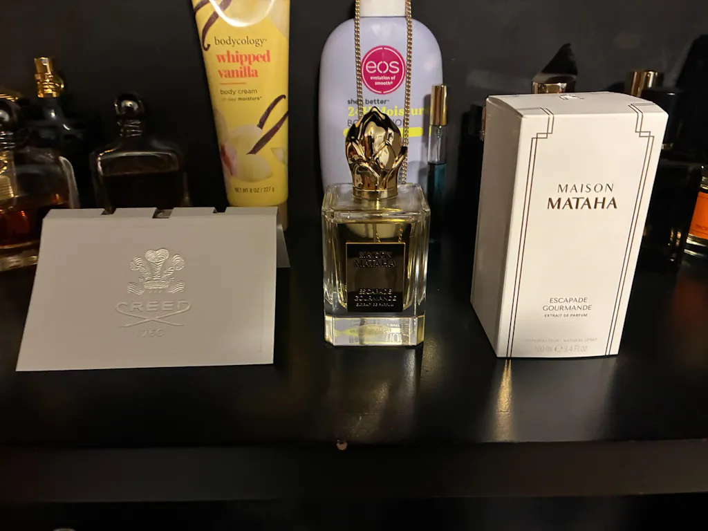 Fragrance Blend: Maison Mataha Escapade Gourmande Extrait de Parfum opens with a sugary sugar‑cane (black sugar) accord, then cascades into rich vanilla and warm tonka bean. It dries on a soft base of benzoin and musk for a seductive, gourmand aura reminiscent of creme brulee. Particular Events: Casual outings,